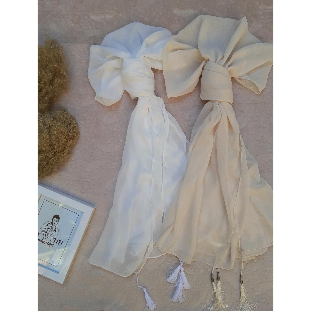 شال حریر ساده رنگ کرم شالحریر کرمی ساده