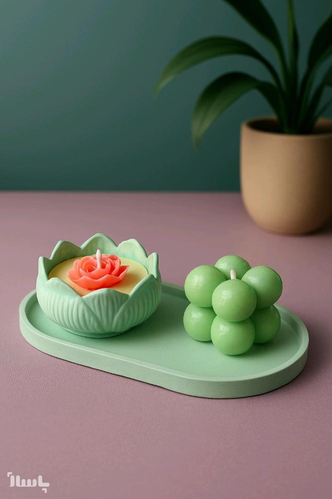سینی و جاشمعی سنگ مصنوعی با شمع روبیک کوچک