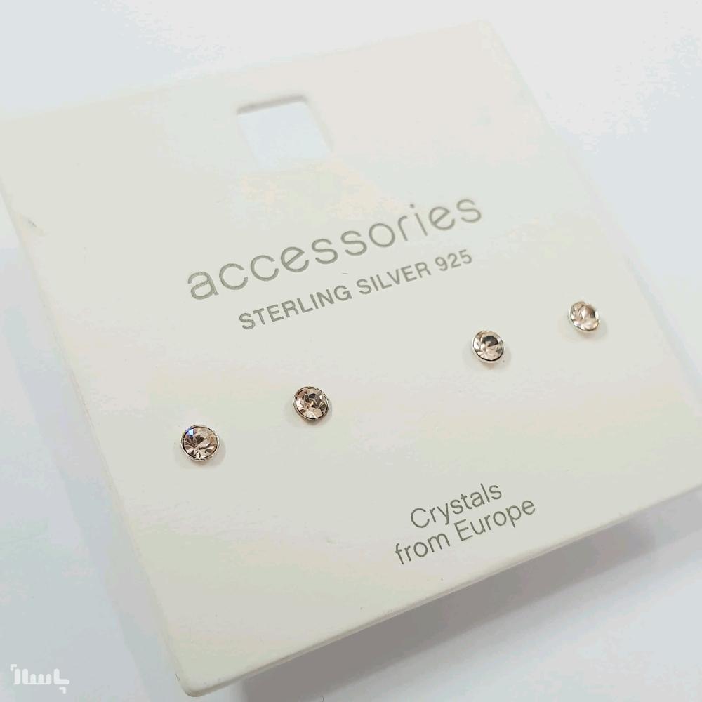 پک دو جفتی گوشواره گلگوش نگین سواروسکی صورتی شامپاینی ، جنس نقره عیار 925 ، بسیار ظریف ، ساخت کشور تایلند ، شناسنامه و بارکد دار ، عیار حک شده روی گوشواره ها