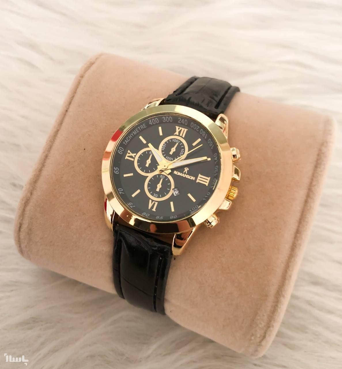 ساعت زنانه و مارک رومانسون بند چرم مشکی صفحه مشکی
