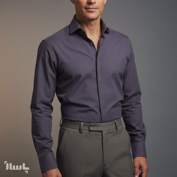 پیراهن مردانه ساده آستین بلند رنگ طوسی یاسی – استایل شیک و رسمی