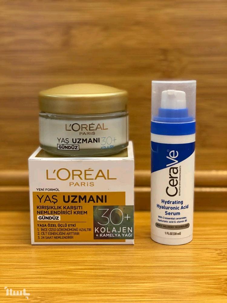 پک کرم ضدچروک لورال پاریس بالای 30 سال (Yaş Uzmanı) بههمراه سرم آبرسان هیالورونیک اسید سراوی بهترین ترکیب برای جوانسازی، رفع خطوط ریز و آبرسانی عمیق پوست است.