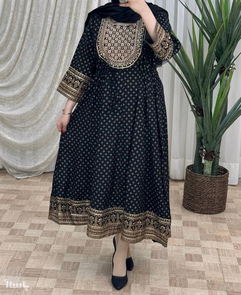 یک پیراهن زیبای اورجینال که کار دست هندیاست سرتاسر طلاکوب شده و گلدوزی و سوزن دوزی و پولک دوزی شده تنخور فوق العاده زیبایی داره