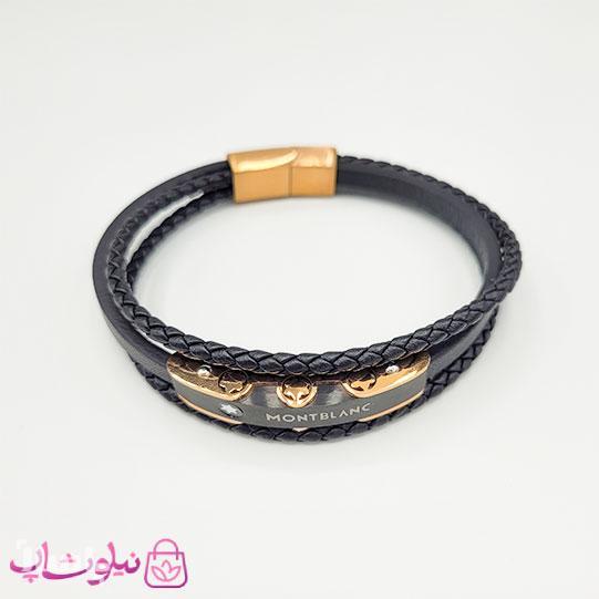 دستبند مردانه برند مون بلان مشکی رزگلد کد 370