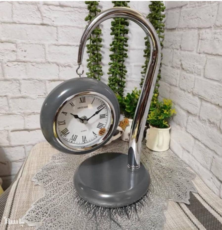 ساعت رومیزی پایه دار رنگ طوسی جنس چوب و فلز با کیفیت و ظیک