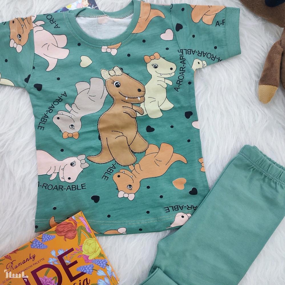 تیشرت و شلوار دخترانه جنس:نخ و پنبه ،بسیار باکیفیت ،لطیف و نرم ،پشت و جلو کار طرح دایناسور ،جلوی کار گلدوزی با چرخ و تکه دوزی چرم کار شده