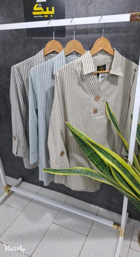مانتو اسپرت زنانه نخی مدل شومیزی راه راه