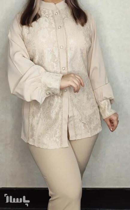 شومیزمجلسی گیپوروکرپ مزونی شیک وارداتی سایز بزرگ زنانه