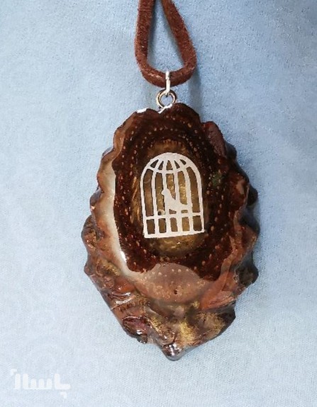 گردنبند دست ساز اپوکسی کاج مدل مرغ آمین با طرح کاج طبیعی از برند E.K,