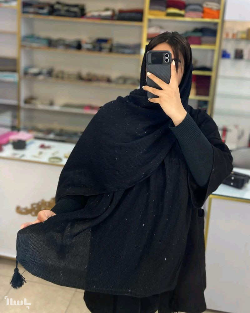 شال مشکی پلیسه شاین دار نخ برشکا ترک