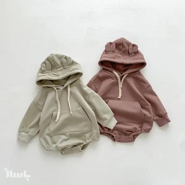 بادی نوزادی کلاهدار طرح خرسی جدیدترین مدل رامپر نوزادی سه نخ مناسب سایز 3 ماه تا 2 سال میباشد.