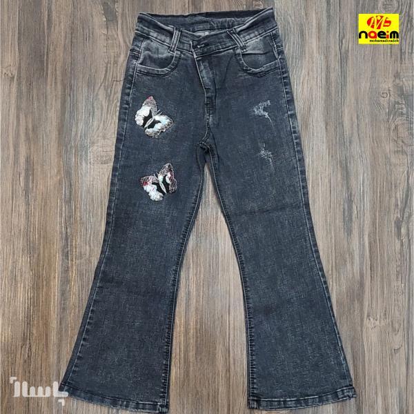 شلوار لی بوت کات دخترانه ذغالی سایز 80-90