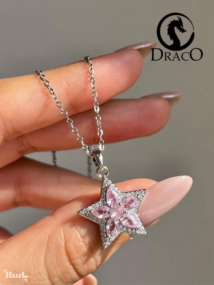یک گردنبند رویایی با طرح ستاره مدل جواهری نگین دار ، با رنگی صورتی آرامش بخش و دوست داشتنی ️
