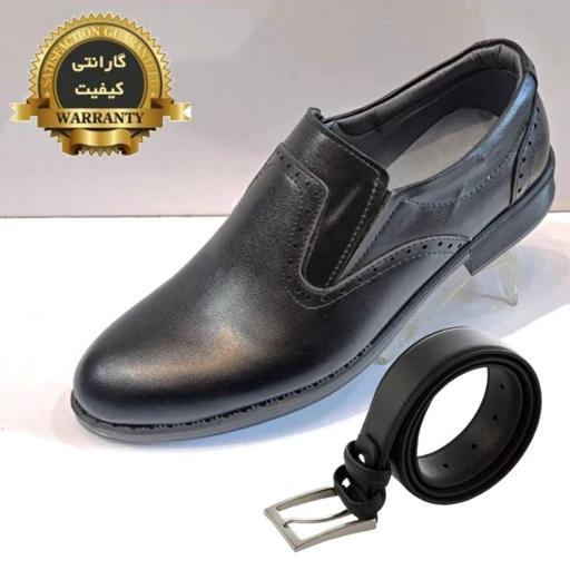 ست کفش و کمربند چرم مردانه شامل کفش رویال کشی و کمربند نیک