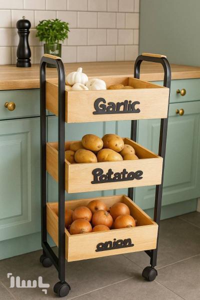 جا پیازی 3 طبقه چرخ دار چوب و فلز