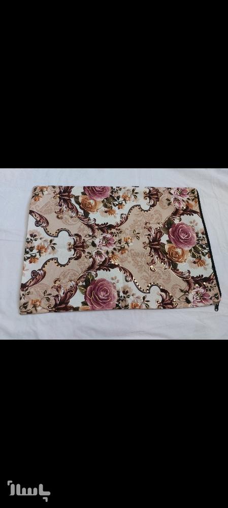 روبالشتی جنس طلا کوب رو گلدار طلا کوب و پشت روبالشتی قهوه ای