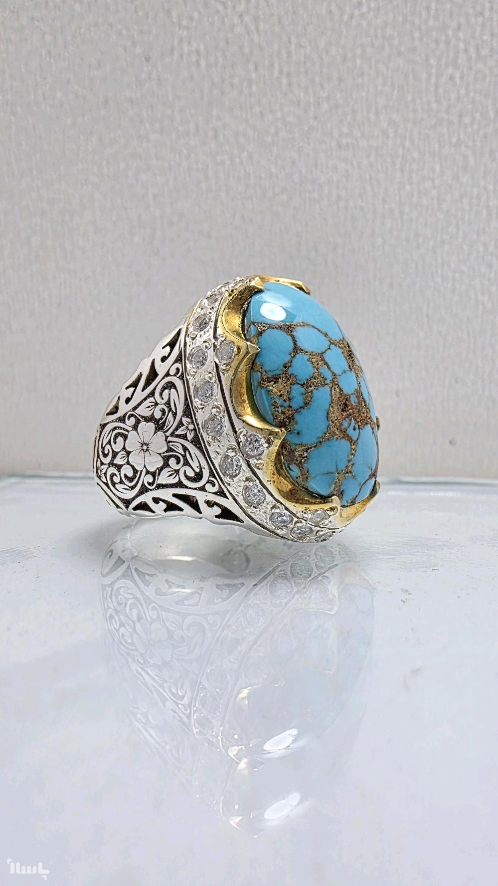 انگشتر نقره رکاب دست ساز با نگین فیروزه نیشابوری شجری رشت