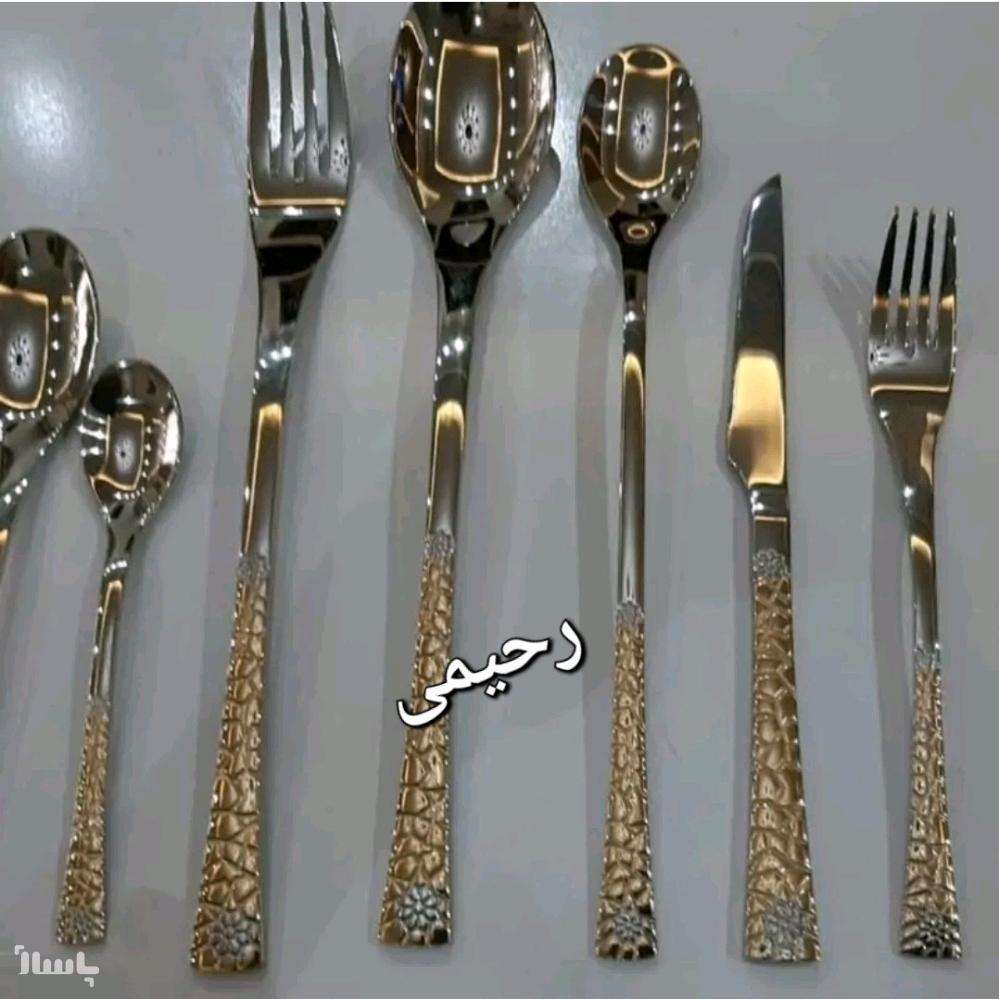 سرویس قاشق چنگال24 نفره 120 پارچه دهانه اروپایی نیمه طلایی جدید