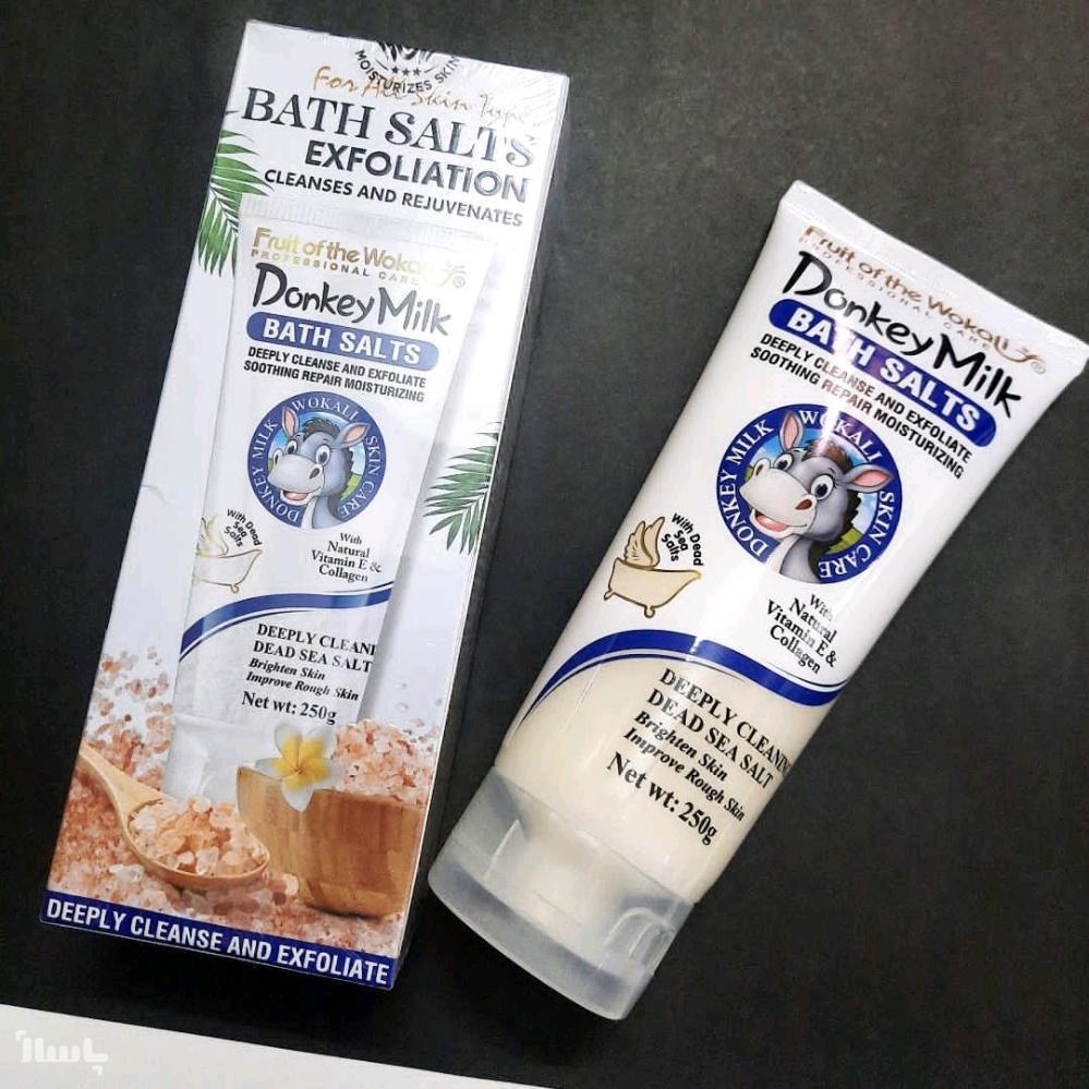 در ترکیبات این نمک از عصاره شیر الاغ، ویتامین E و کلاژن استفاده شده است که باعث سفید شدن، نرمی و لطافت پوست می شود.