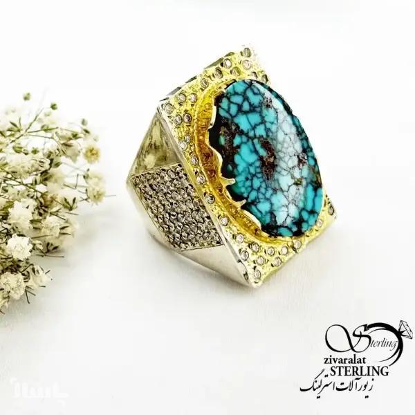 انگشتر نقره درشت سنگ فیروزه رکاب دست ساز کد 20249