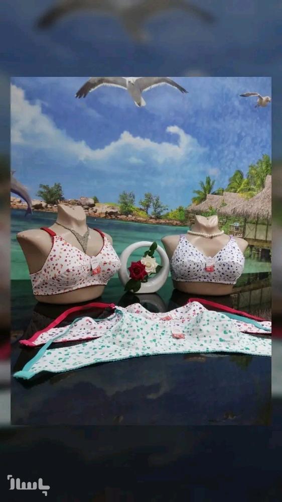 سوتین نخ پنبه ای دو لایه طرح قلبی 70!تا 85 رنگ زمینه سفید با قلب رنگی زیر قیمت بازار