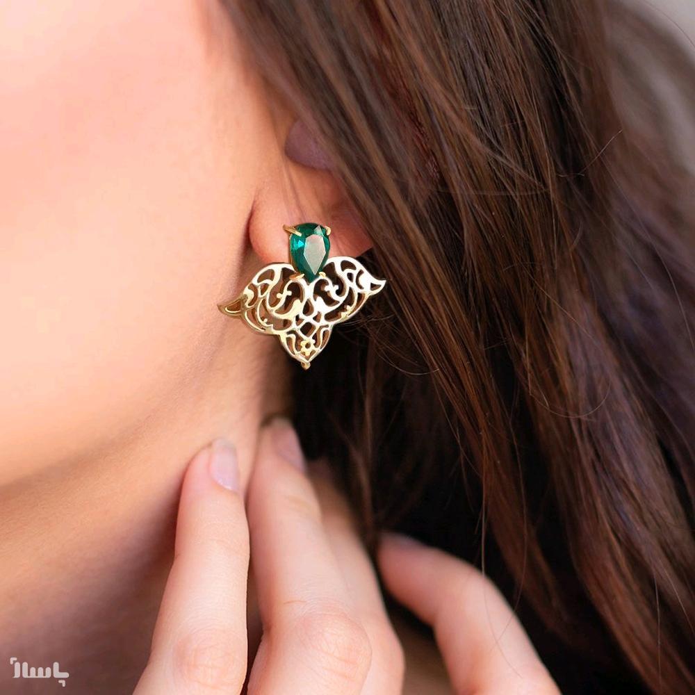 گوشواره قجری ( میخی یا آویزی) برای جنس برنج با نگین کریستال مرغوب از طرحهای مجموعه هزاردستان ساخت و تولید شده توسط هنرمندان ایرانی مناسب هدیه شنا به همراه هارد باکس جواهرات