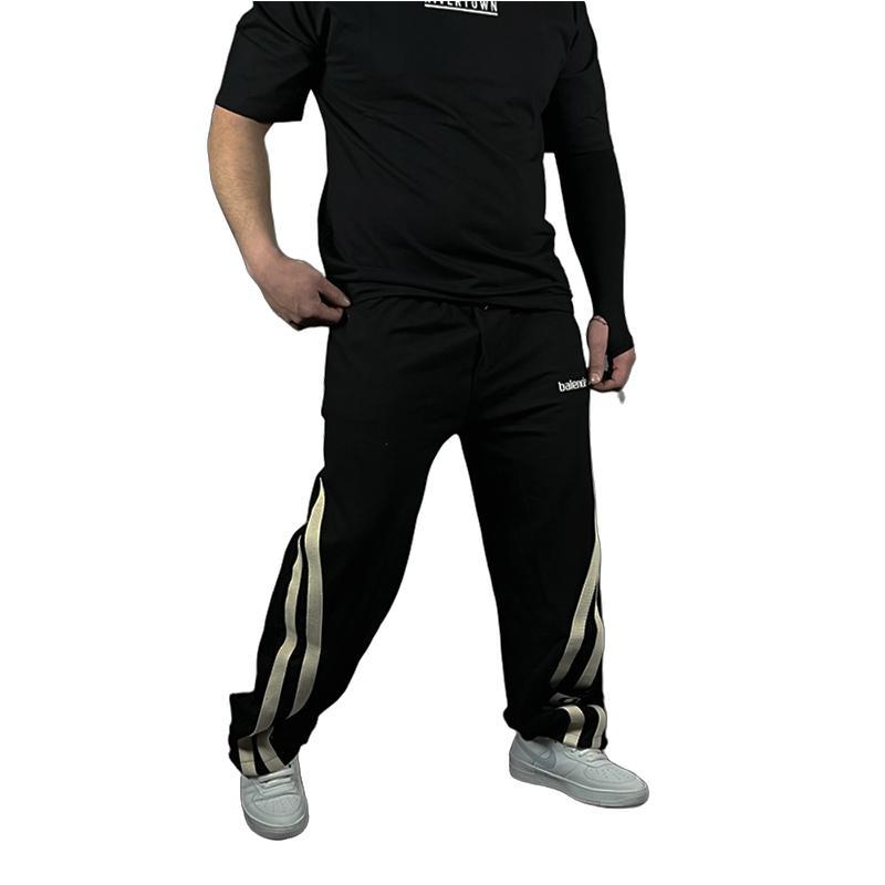 شلوار اسلش بگ مردانه مشکی طرح دو خط کج