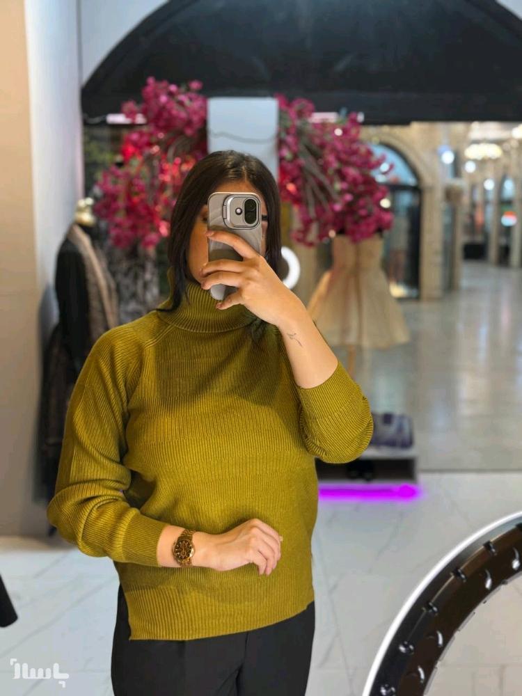 بلوز بافت سبز زنانه دخترانه یقه اسکی خارجی