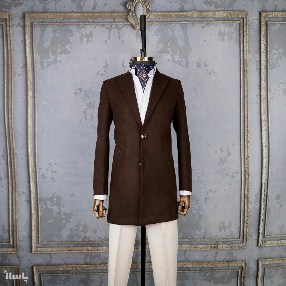 پالتو مردانه دو دکمه فوتر قهوه ای