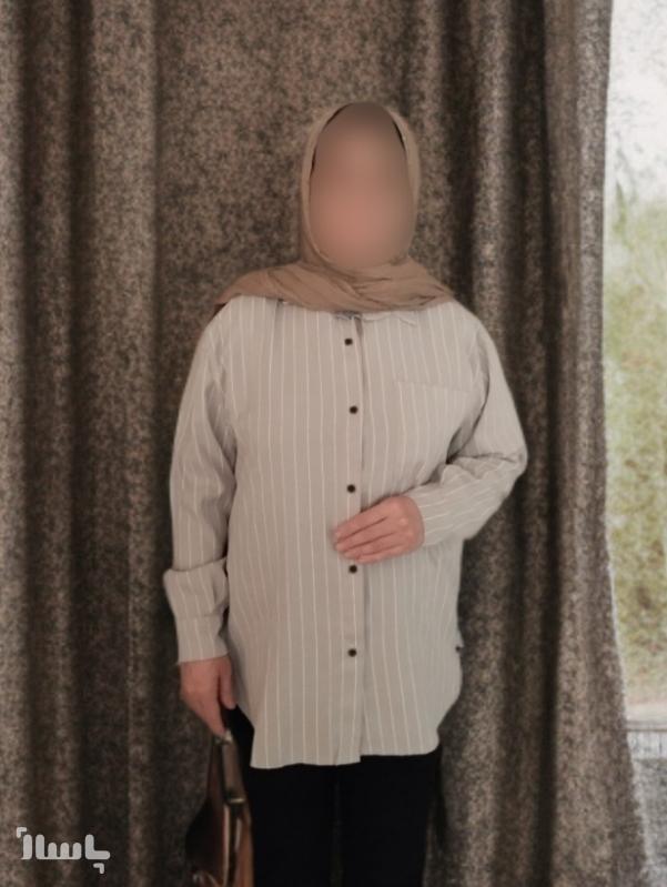 شومیز مانتویی کرم راه راه ارسال رایگان