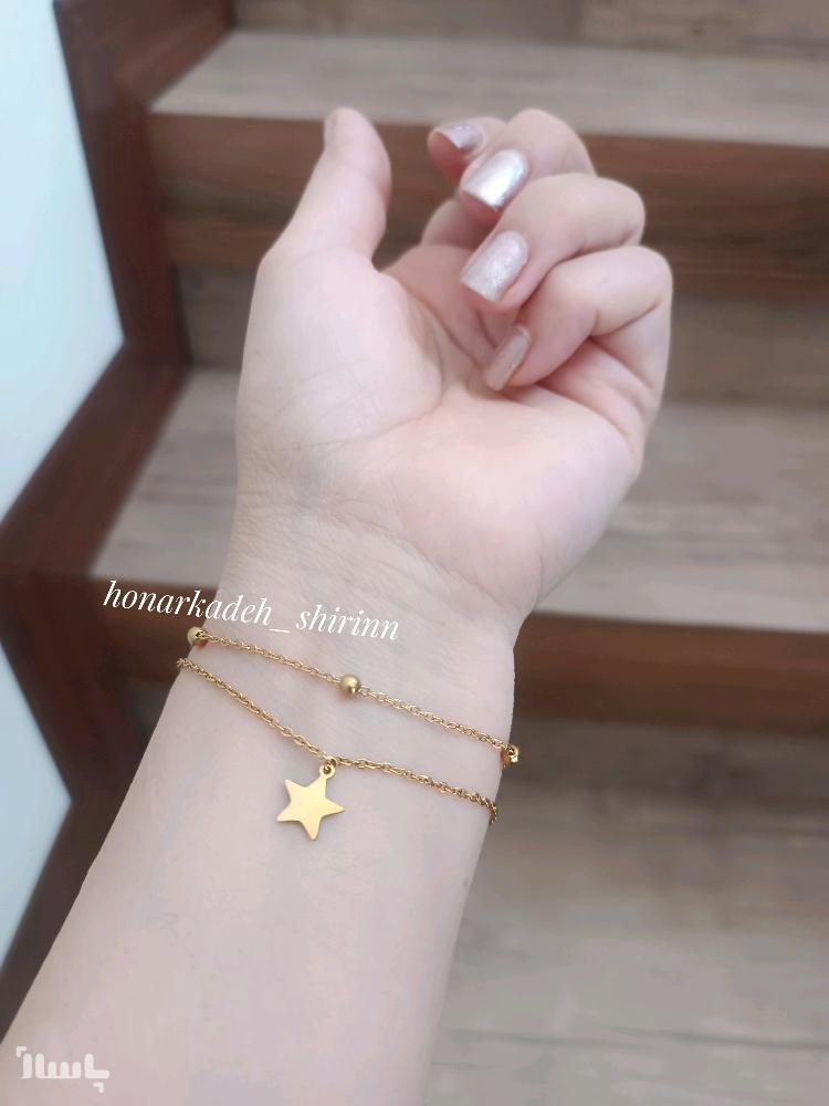 دستبند دو ردیفه با زنجیر توپی و آویز ستاره