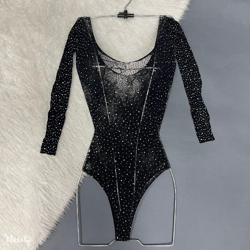 بادی یکسره نگین دار وآستین دار کاری شیک و خاص مناسب برای همه استایل ها