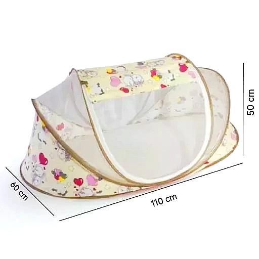 پشه بند کودک سه فنره طرح کمپ جعبه ای ( BABYS WORLD ) کرم