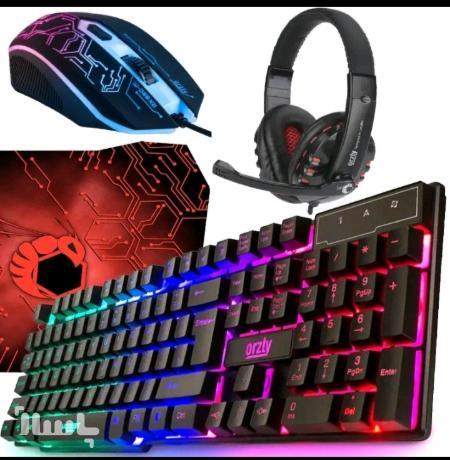 ست گیمینگ کیبورد و موس پد موس و هدفون گیمینگ نورپردازی RGB