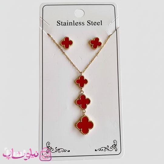 ست گوشواره و گردنبند ونکلیف آویزدار قرمز کد 1891