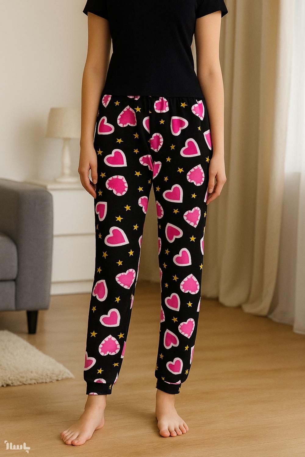 شلوار پیژامه مخمل مشکی قلبی وارداتی دبی