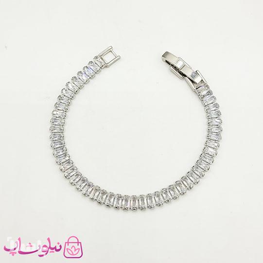 خرید دستبند زنانه تنیسی مدل نقره ای نگین سفید