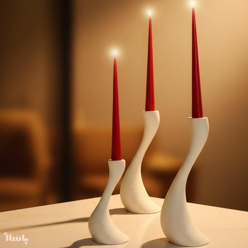 تعداد شعله: دارای سه جایگاه مجزا برای قرارگیری شمعهای میلهای بلند (مانند شمعهای موجود در تصویر) که نوری دلپذیر ایجاد میکند.