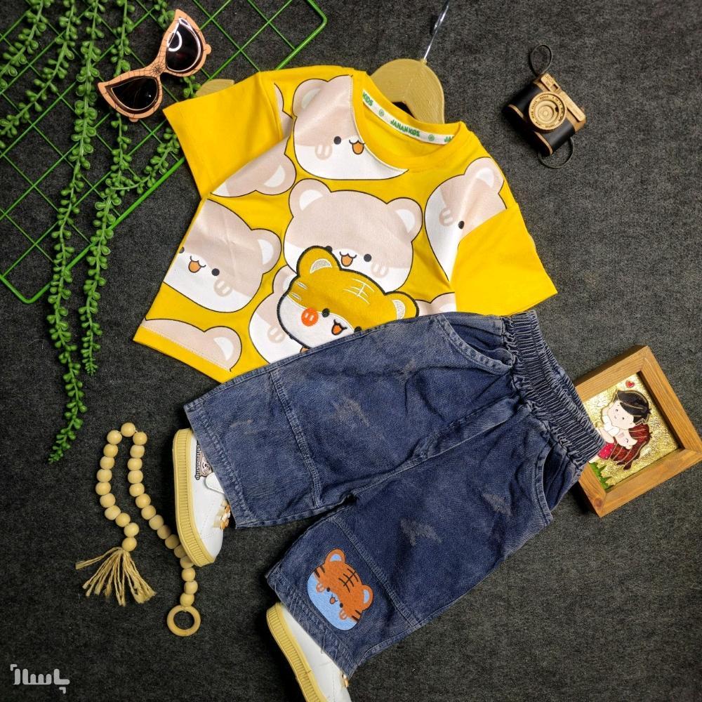 ست تیشرت و شلولرک پنبه گرم بالا گلدوزی شده و شلوارک جین اعلا ببری
