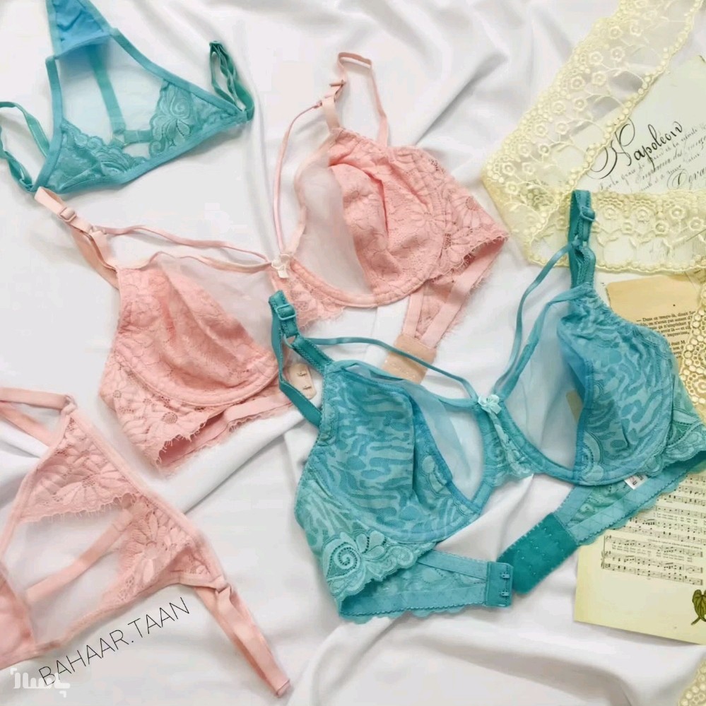 این ست فانتزی میباشد ، سوتین استر نخی دارد و فنردار میباشد ، نیمی از کاپ سوتین توری بدن نماست