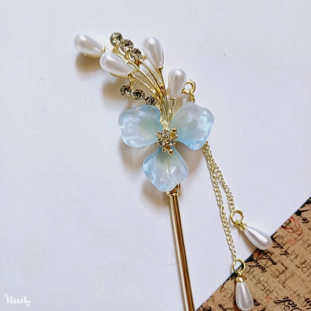 کانزاشی مو زنانه طرح گل سه پر آبکاری شده وارداتی