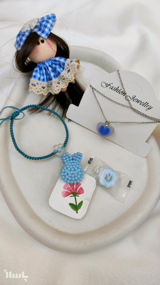 دستبند گردنبند قلب عروسک آبی روز دختر