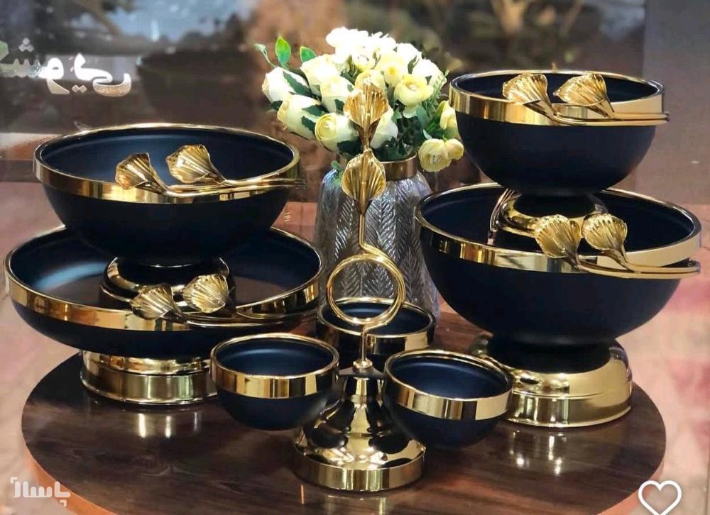 شامل 5تیکه میوه خوری،شیرینی خوری ،اجیل خوری ،شکلات خوری،اردوخوری