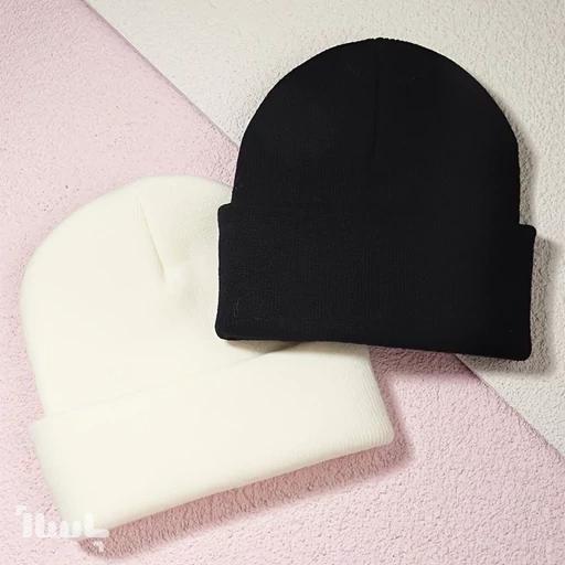 کلاه بافتنی مشکی و سفید استایل مینیمال زمستانی