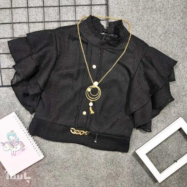 شومیز کراپ دخترانه مشکی دخترانه کد 8219