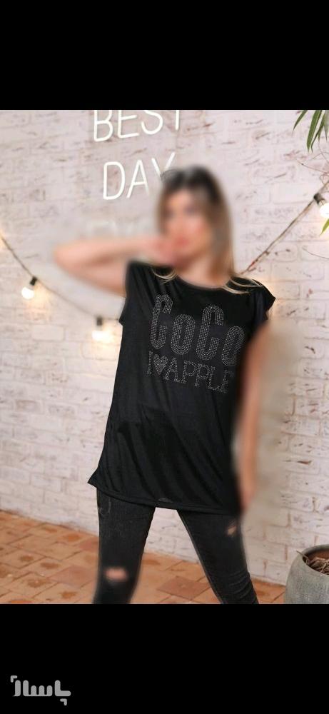 تیشرت زنانه مشکی نخی سایز بزرگ چاپ نگینی