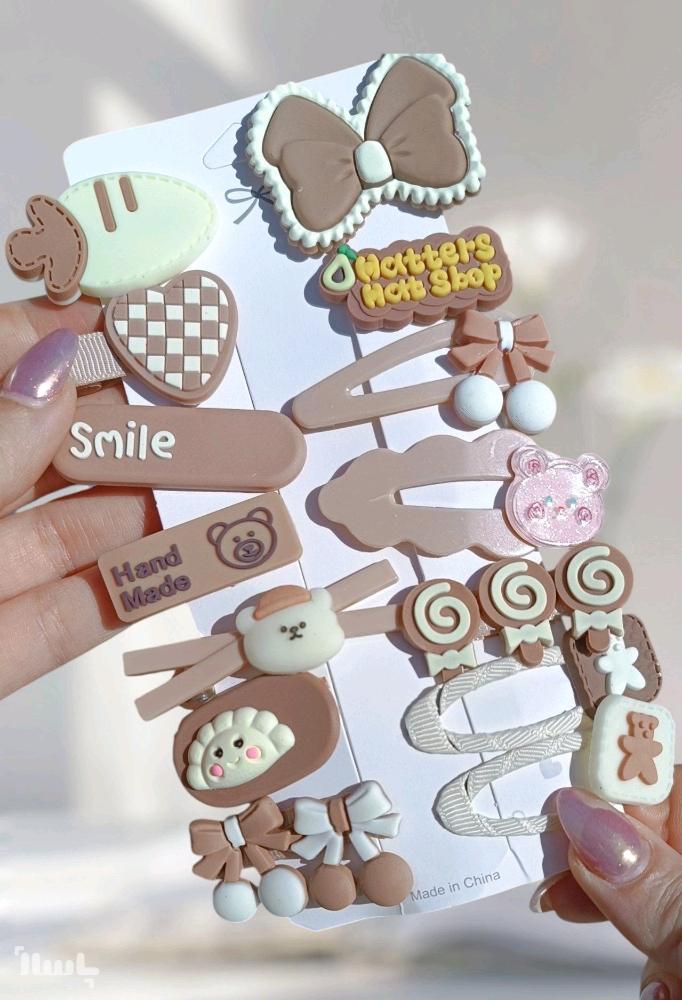 پک 14 عددی گیره سر مو با طراحی فانتزی و رنگ های نود شیک و جذاب