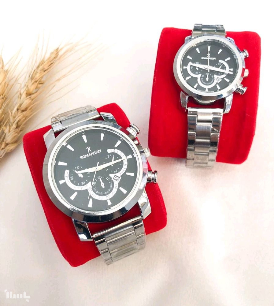 نام : ست ساعت زنانه و مردانه باهم مارک رومانسون بنداستیل نقره ای صفحه مشکی. طرح سه موتوره