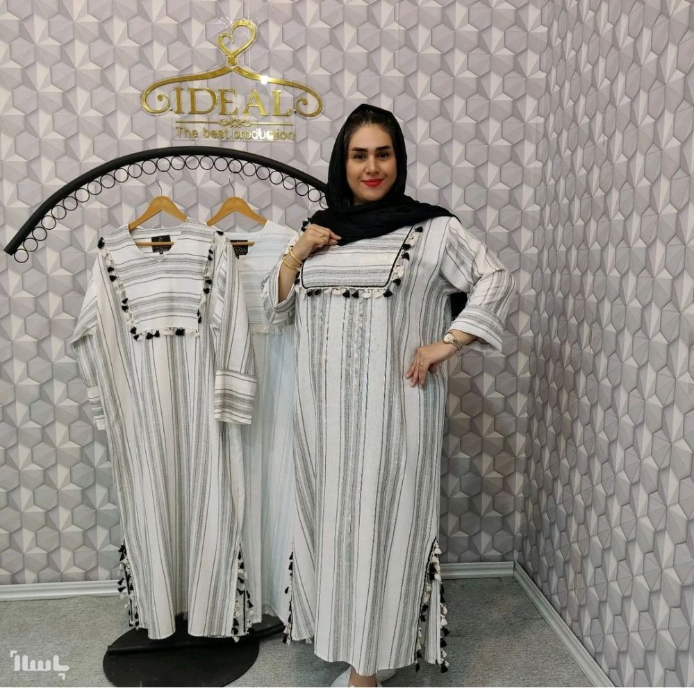 پارچه کنفی ترک.بغل چاک دار.نوار منگوله سر سینه وبغل چاک کار شده