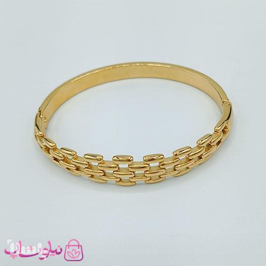 بنگل زنانه طرحدار استیل رنگ طلایی قطر 57 میل کد 1998